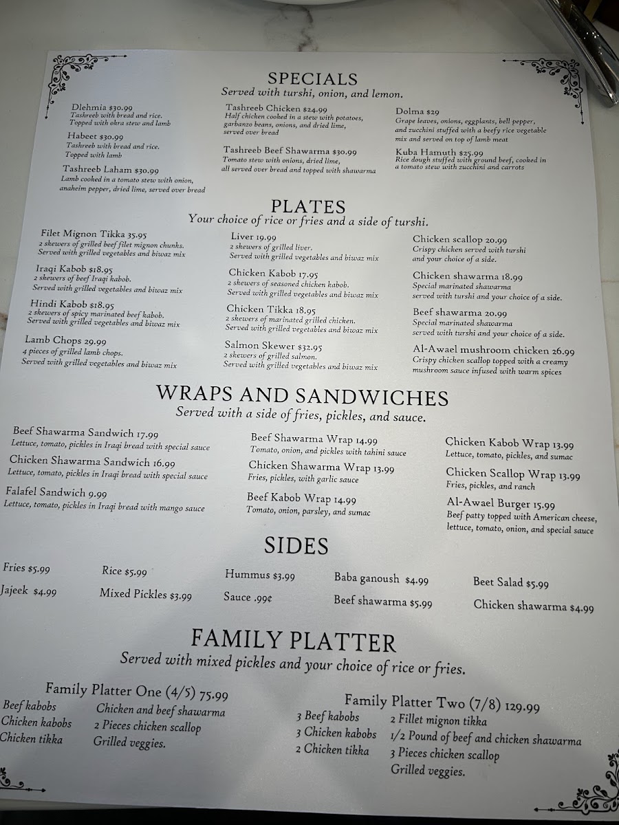 Stepping into Al Awael Restaurant Menu feels like discovering a spot where comfort food and bold Middle Eastern flavors meet in the best way. Tucked along 1255 Avocado Ave suite 105-107 in El Cajon, this place keeps things simple but delivers big on taste. As you look through the dishes, you’ll notice how each one leans into rich spices and hearty portions, whether you’re craving something grilled, something slow-cooked, or just a warm, familiar side to go with your meal.